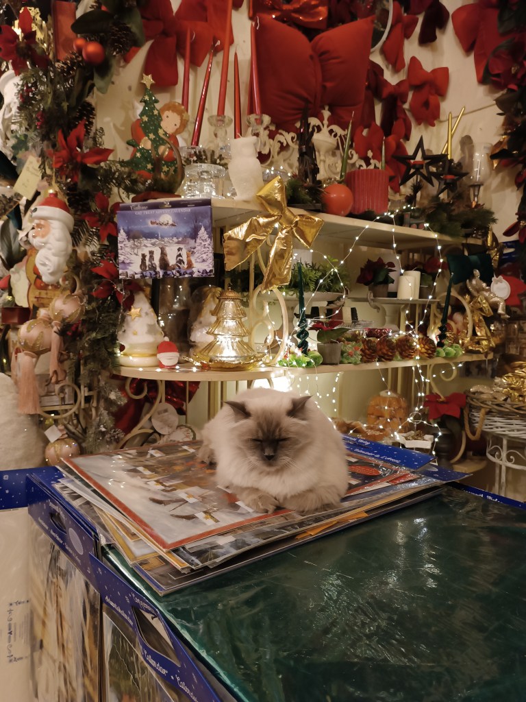 Au retour, je lui fais découvrir un magasin spécialisé dans les décos de Noël où vivent deux gros chats que j'ai déjà hâte de revoir.
