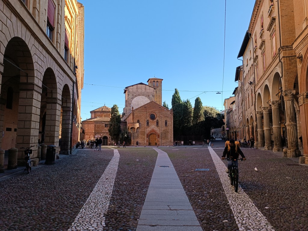 Mon panini à la mortadelle, scamorza et crème d'asperge dans la main, je me rends Piazza Verdi (la place des étudiants) et mange mon panino au soleil, entourée de pigeons.