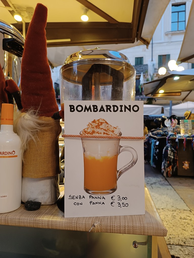 Finalement, je mange liquide : je décide de goûter un bombardino, une boisson chaude typique du nord de l'Italie à base de sabayon, brandy et crème fouettée. C'est un peu leur Irish coffee. Pas mal mais je n'ai pas le coup de foudre.