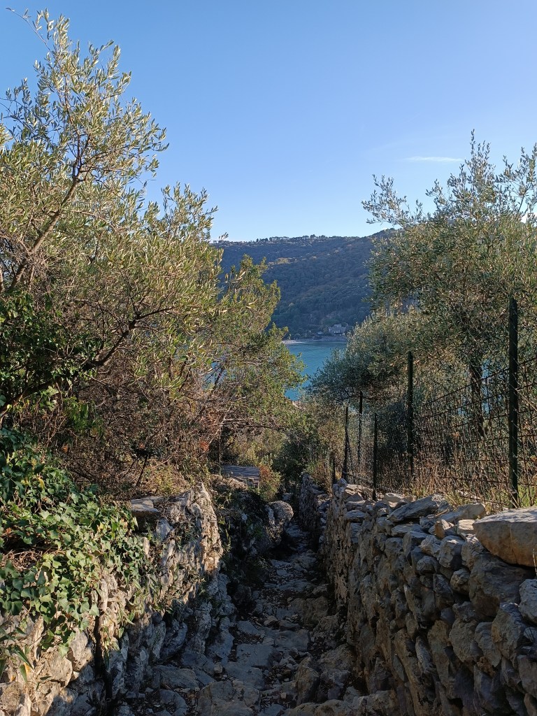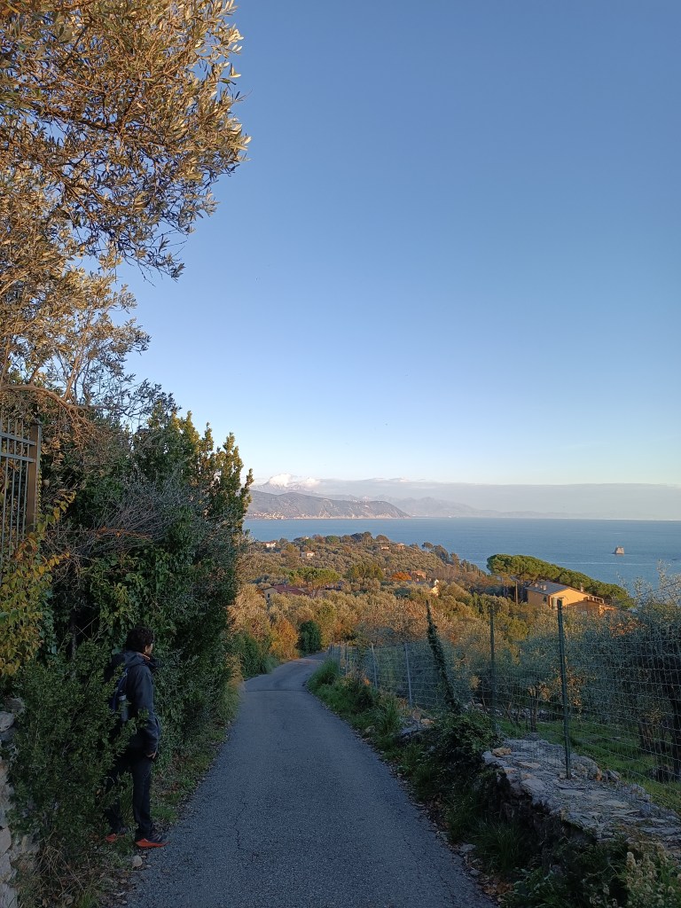 Simon a trouvé une petite randonnée nous permettant de rejoindre Le Grazie une petite ville entre Porto Venere et La Spezia. Allez, c'est reparti pour monter des marches. Je râle un peu car je suis devenue une feignasse avec l'âge mais au final, la vue est absolument magnifique. On voit le golfe des poètes, les oliviers, la côte qui continue au loin... Peut-être même qu'on aperçoit Pise. C'est un chemin agréable surtout avec ce soleil d'hiver qui attendrit le paysage. Je ne me lasserai jamais de ces champs d'oliviers, de ces maisons colorées, de ce bleu ligurien.