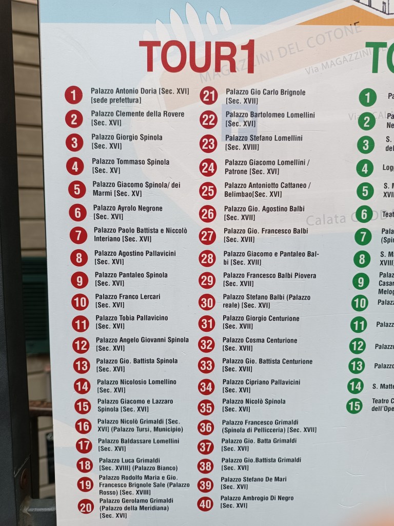 Nous poursuivons notre tour des palazzi avec la Via Balbi où se trouve l'Université et le Palazzo Reale qui domine le port. Nous rejoignons ensuite le Vieux Gênes pour faire des achats. On y passe beaucoup de temps et d'argent et nous décidons de tester le métro pour revenir à l'hôtel. Tickets en poche, on se rend compte que le métro est gratuit de 14h à 18h... Tant pis, on les donnera à des Génois ! Achats déposés, nous faisons une petite pause miam dans un café et reprenons notre visite du centre ville.