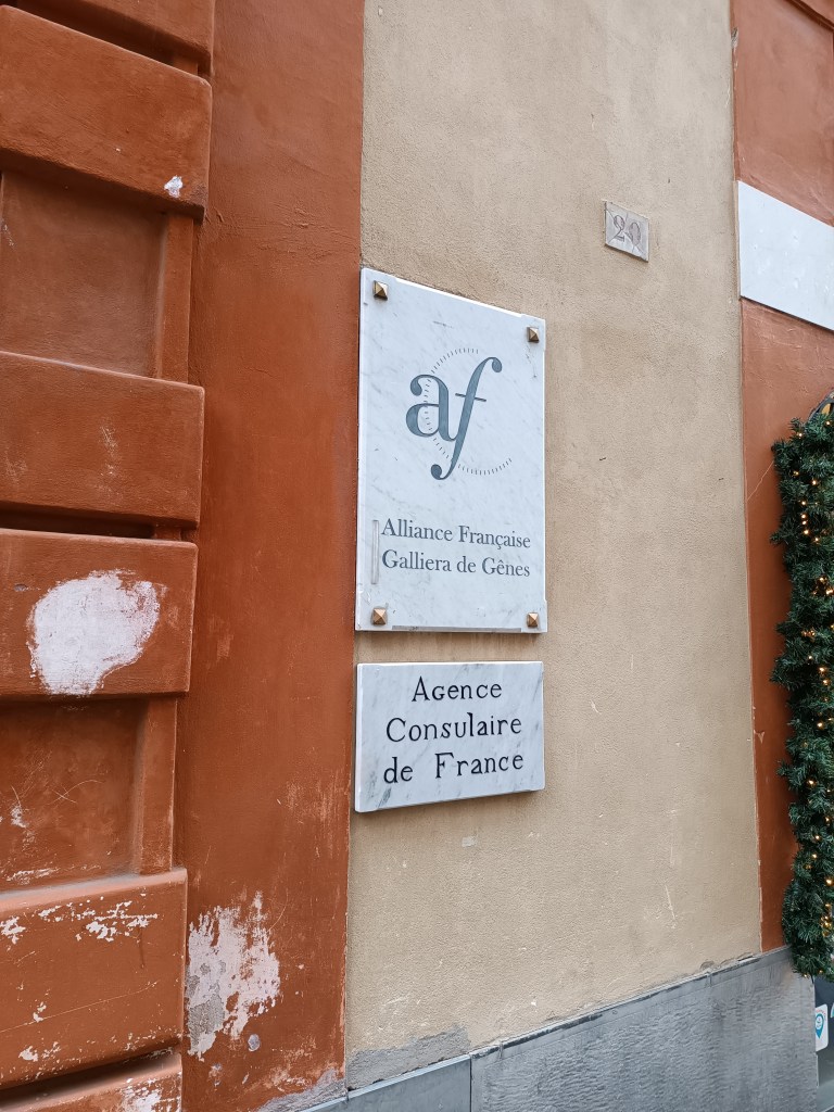 La plupart sont occupés par des banques. Il y a même un Crédit Agricole dans un palazzo génois! Classe. Tiens tiens tiens, mais que vois-je entre deux palais, l'Alliance française ! Oh ben on va aller faire un petit coucou. Nous saluons la directrice et repartons avec quelques brochures.