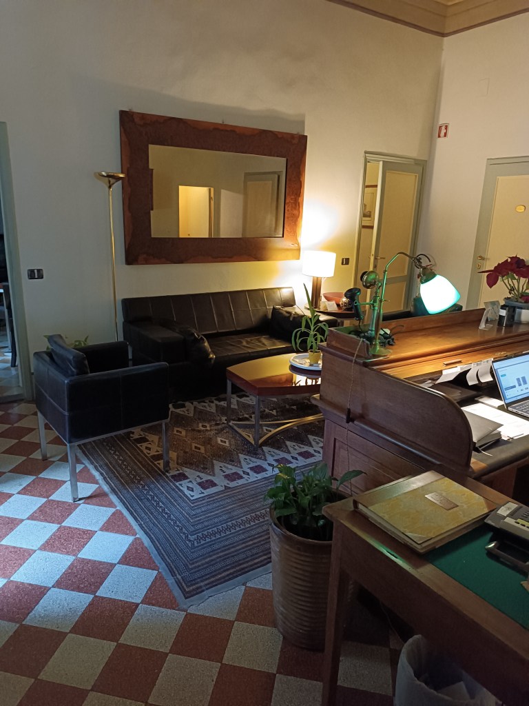 C'est donc là que j'effectue les check-in, les check-out, que je cherche du travail, des bonnes adresses florentines... En attendant qu'une des chambres se libère, je révise les quelques notes que j'ai prise la veille et me familiarise avec mon espace de travail. "Tutto bene ? Se volete, potete lasciare le valigie qua..." Mon premier checkout était avec des Italiens. Je bafouille un peu mais je m'en sors. Bon, ça devrait aller.