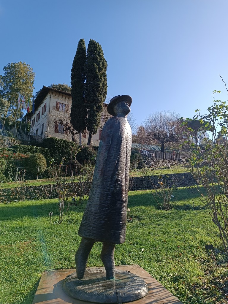 Désolée, le zoom de mon téléphone est vraiment nul. Ce jardin en terrasse est célèbre pour ses roses mais également pour les sculptures de l'artiste belge Folon. Regardez le gros chat qui dort dans l'herbe :