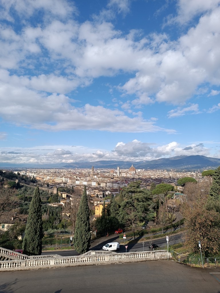 En marchant, j'écoute la dernière émission du podcast de Sophie Marie Larouy, "A bientôt de te revoir". Je l'adore cette nana. J'ai le sourire aux lèvres, les gens me regardent avec curiosité. Je retrouve la petite route qui grimpe vers la Piazzale Michelangelo.