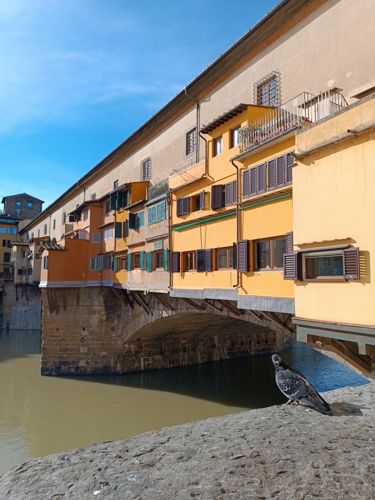 "Irresistibile scioglievolezza" Je radote mais, avec le soleil, les journées sont plus simples. Je longe l'Arno, salue les pigeons et traverse le Ponte Vecchio, toujours bien animé même en basse saison.