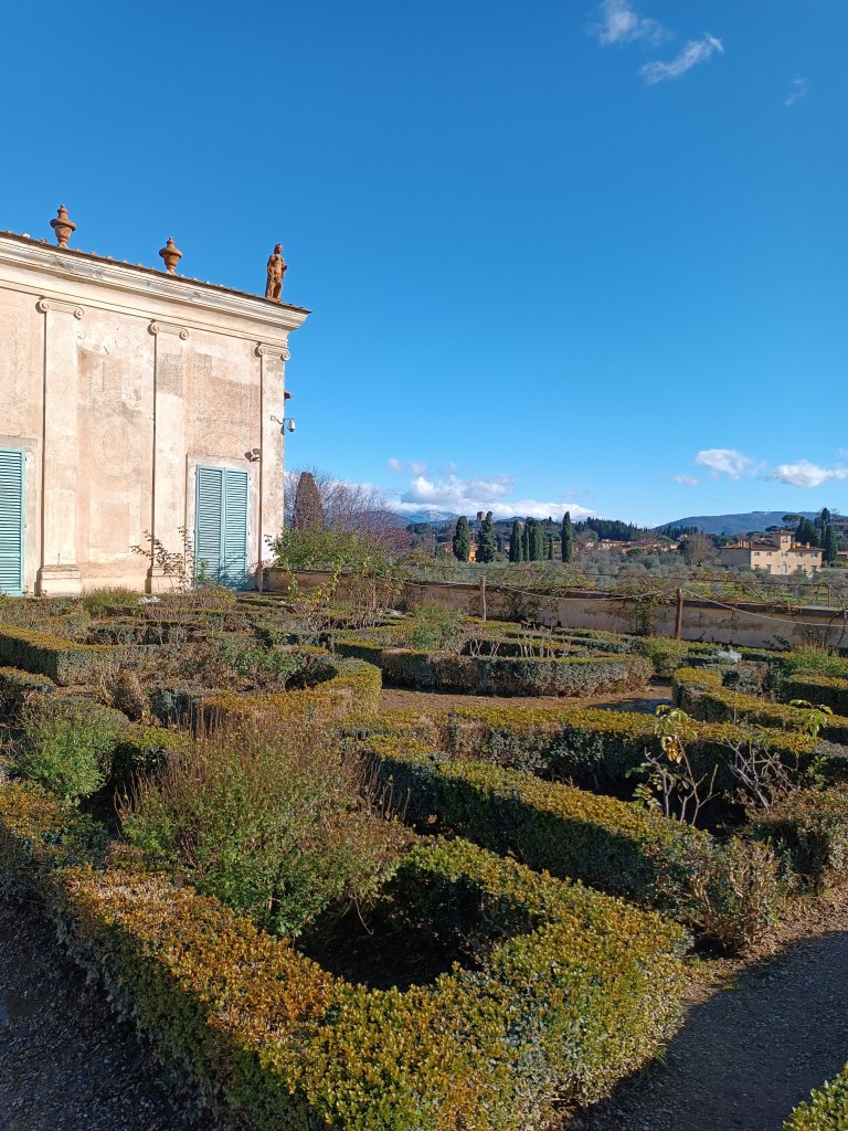 J'arrive ensuite alla Palazzina del Cavaliere (en haut de la carte) où l'on peut admirer une belle vue sur les hauteurs du quartier de San Niccolò. Je vois au loin San Miniato al Monte et mon cher giardino delle rose. J'espère pouvoir y retourner cette semaine.