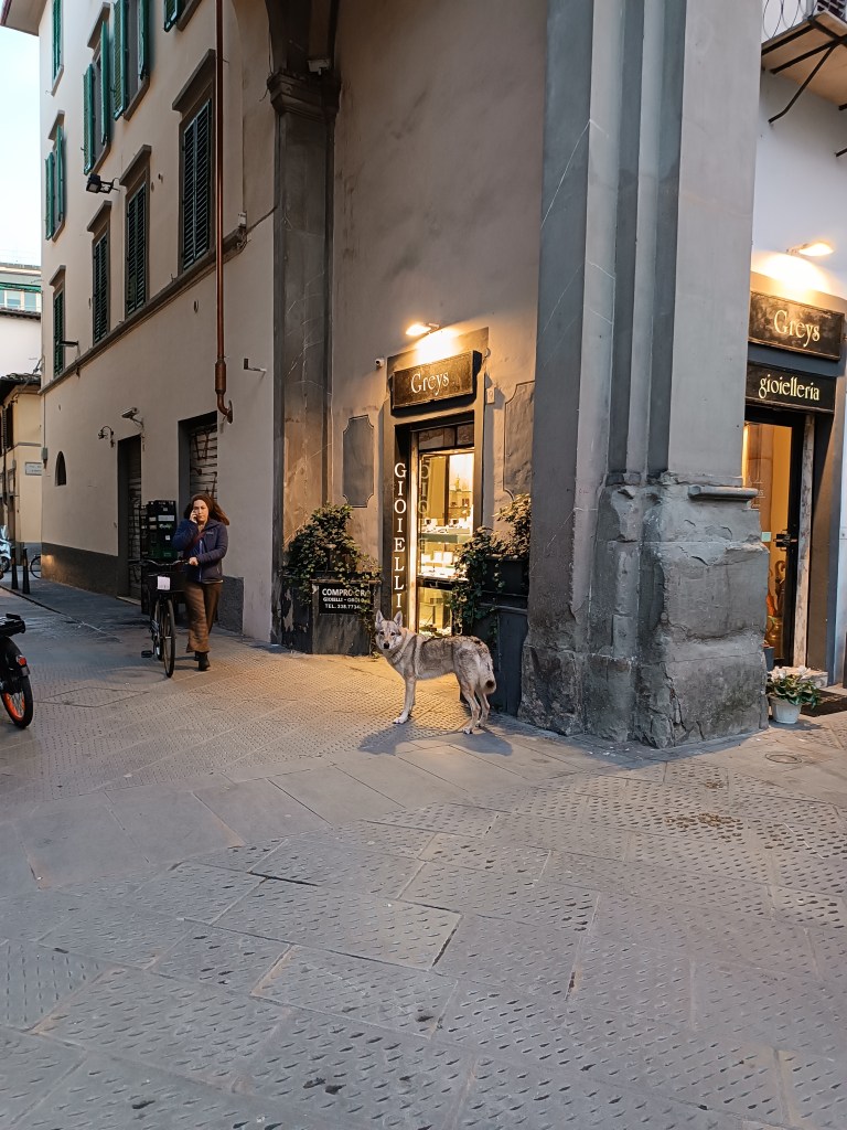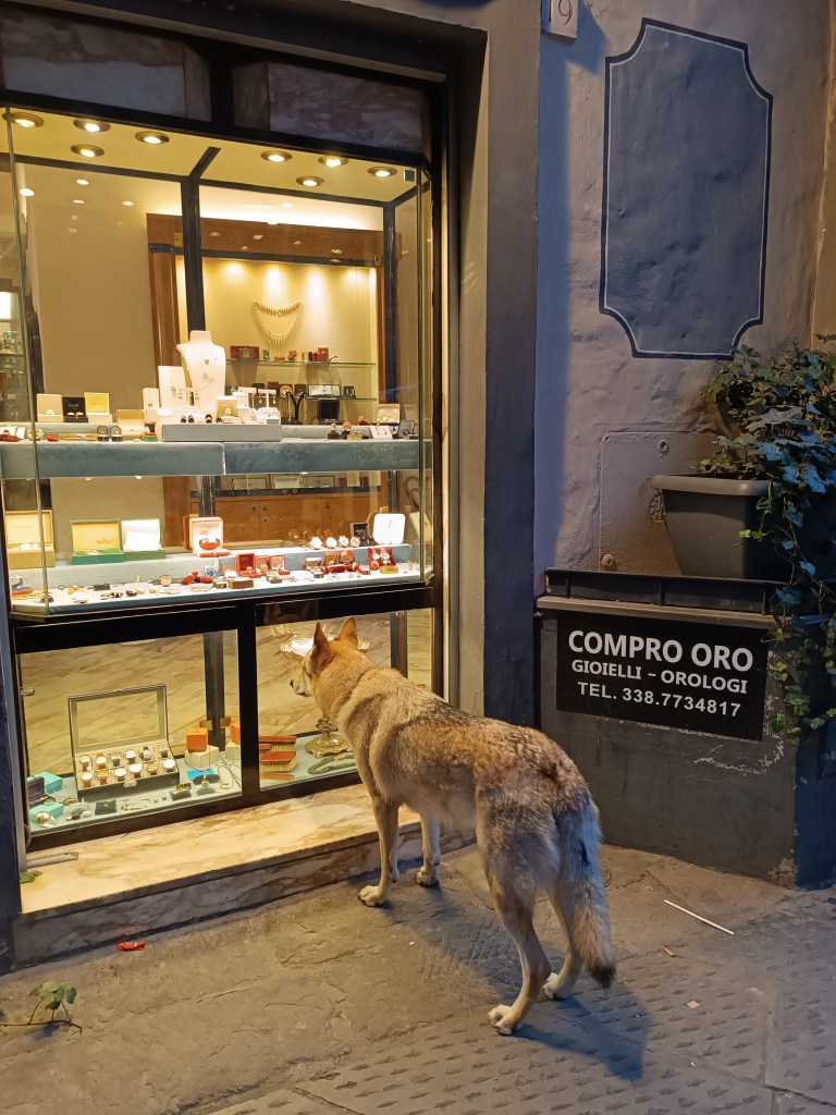 Je digère en admirant la "golden hour" hivernal sur Santa Maria del Fiore et je tombe sur un loup qui veut acheter des bijoux.