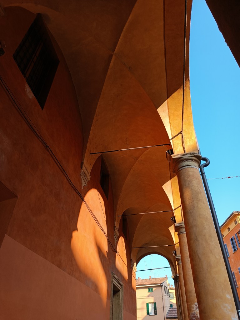 La campagne toscane défile sous mes yeux et les collinettes laissent progressivement la place aux plaines de l’Emilie-Romagne. Je suis toute excitée de revoir Bologne. Cette ville a quelque chose de doux, de sympa, on s’y sent bien sans savoir pourquoi mais on s’y sent bien. Je (re)découvre avec bonheur la ville à l’approche du printemps. Bon oui c’est pas pour tout de suite la primavera mais il n’empêche que la luminosité est différente et je peux enfin enlever mon écharpe. Je retrouve la Piazzetta della Pioggia que j’aime tellement. Je vais radoter tant au niveau des photos que de mes écrits mais… Ces murs ocres, orangés, ces portici, ces jeux de lumière, oh Bologna, t’es vraiment bella !