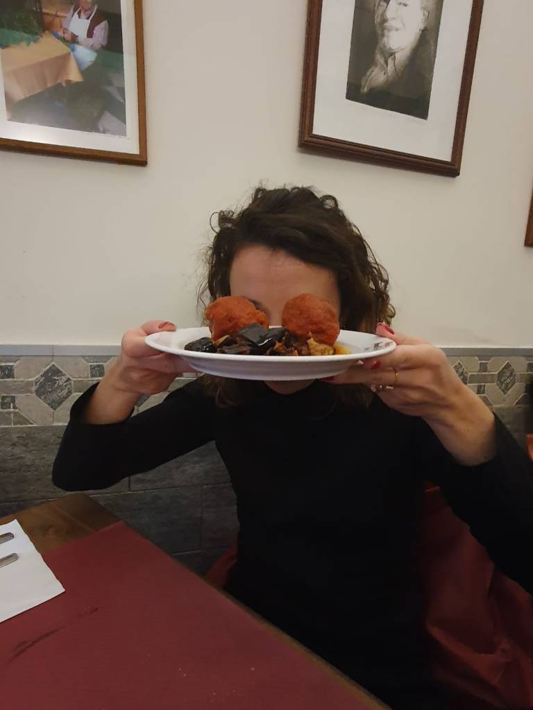 La nuit tombe, nous reprenons notre route pour un aperitivo alla Fonoteca, un bar à disques. Sympa bien qu'un peu snob. Nous nous rendons ensuite all'Osteria Donna Teresa, restaurant centenaire et institution du quartier. Pas de menu papier, c'est la gérante qui nous énonce les plats. Nous prenons des pâtes et une soupe de lentilles puis des polpette avec des aubergines. On s'est même retrouvées sur une vidéo d'un youtubeur, à croire qu'on a trouvé une adresse de derrière les fagots.