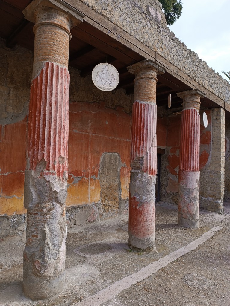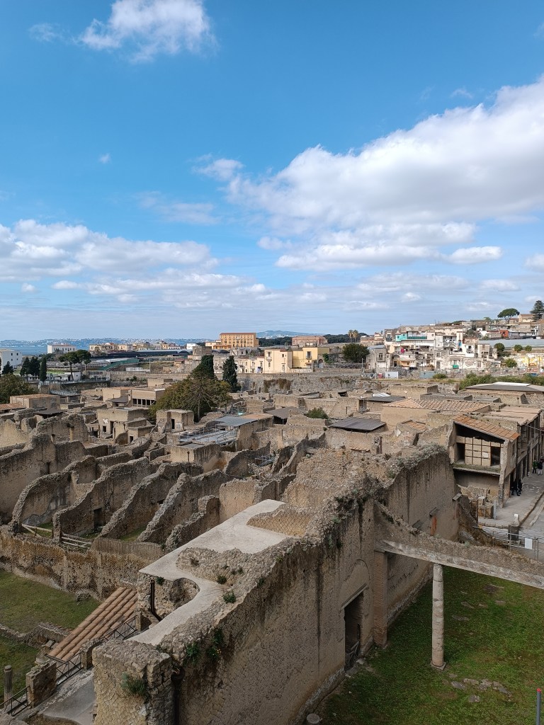 L'éruption a eu lieu en 79 et a englouti cette petite ville balnéaire, moins animée et commerçante que Pompéi mais tout aussi riche avec ses belles villas de bord de mer. Le site a été découvert par hasard au 17e siècle par un paysan qui creusait un puits. Plus proche de la coulée du Vésuve, la cité est beaucoup mieux conservés qu'à Pompéi. Je vous passe les détails de l'éruption mais cette dernière a "permis" une conservation des matières organiques même carbonisées, comme le bois, les étoffes, le mobilier et les étages supérieurs des édifices ce qui est assez exceptionnel.