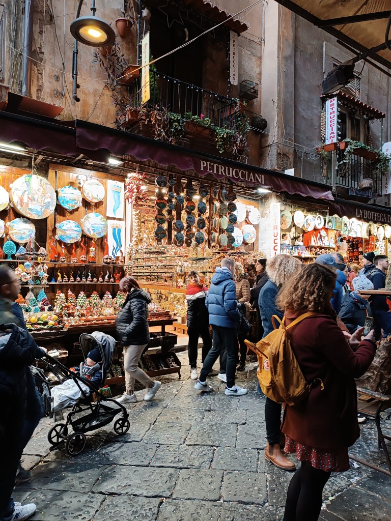 Nous sortons et prenons la Via San Gregorio Armeno, célèbre pour ses boutiques de santons et de figurines. C'est le paradis de la crèche ici. On retrouve même des miniatures de célébrités comme Maradona, Berlusconi... Un véritable art !
