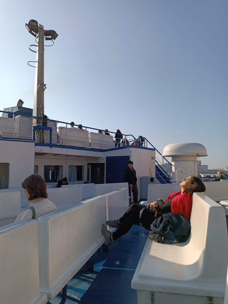Je déjeune à l'extérieur puis retourne vers l'autre Marina pour attraper mon ferry. Cette fois-ci, pas de terrasse, j'en profite pour piquer un somme.