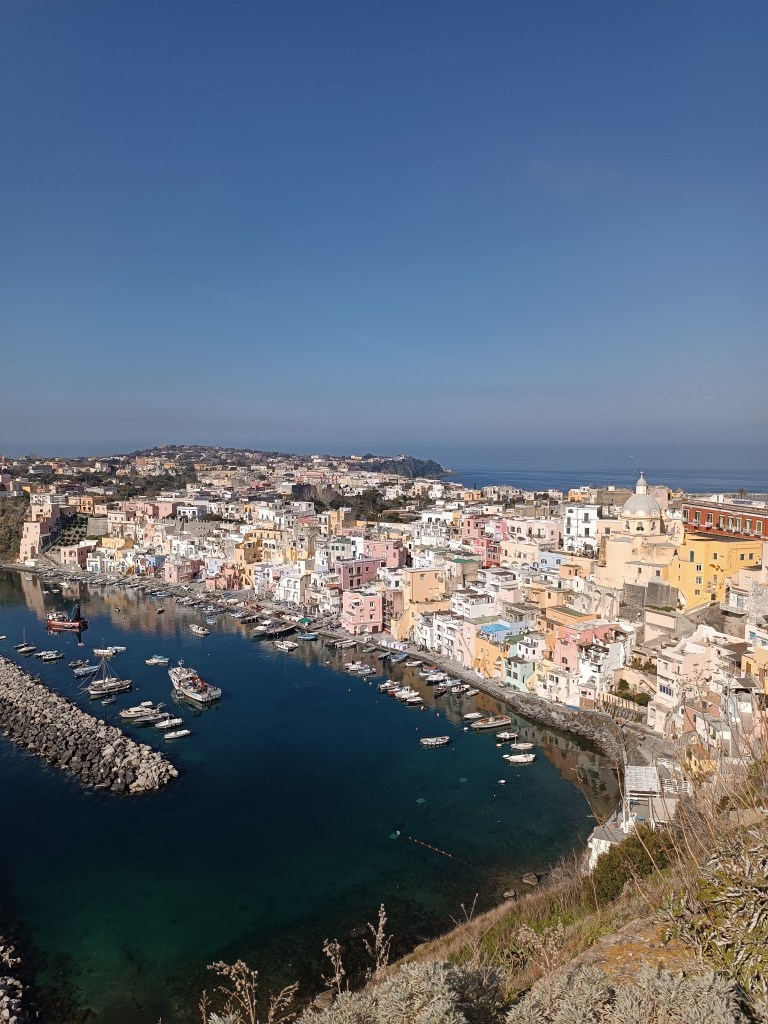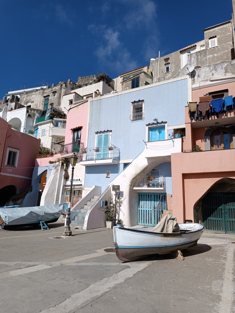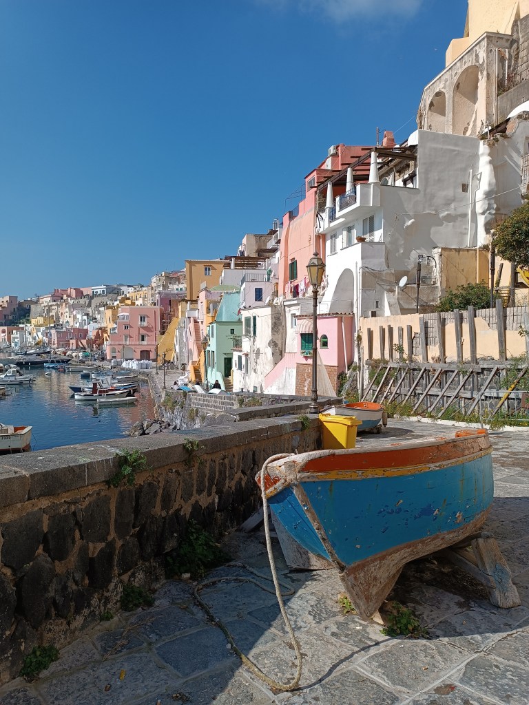 La traversée dure une petite heure, même pas le temps de finir un sudoku. Nous débarquons à la Marina Grande mais moi, c'est la Marina Corricella que je veux absolument voir. En forme de virgule, cette marina concentre toute une palette de maisons de pêcheurs aux couleurs pastel. J'y arrive après une petite marche de 15 minutes.