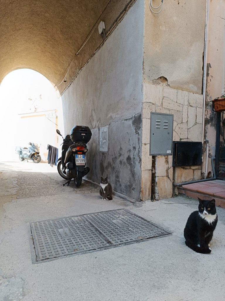 Cependant, avant de descendre sur le quai, je décide de prendre de la hauteur et d'explorer le vieux centre historique de Terra Murata, la partie la plus haute de l'île. De là, un superbe point de vue sur la Marina et des chats à gogo.