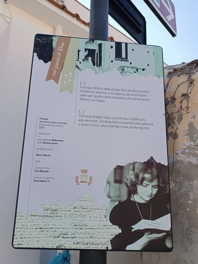 Je redescends vers la Piazza dei Martiri, ça cause devant l'église. Je lis en passant un panneau sur les tournages de film qui ont eu lieu à Procida.
