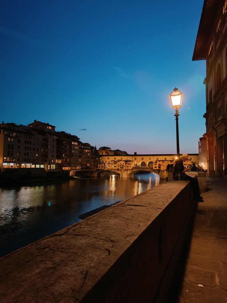 J’ouvre ma valise, je prends une douche et je pars faire quelques courses. Café, stracchino, biscuits, pâtes, pesto rosso… Le nécessaire pour survivre. Je me dépêche un peu car j’ai envie de voir Florence au crépuscule. Le ciel est d’un bleu clair et tendre. Putain qu’c’est beau!